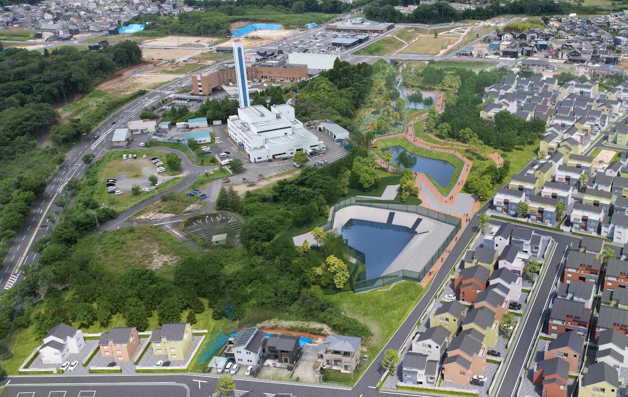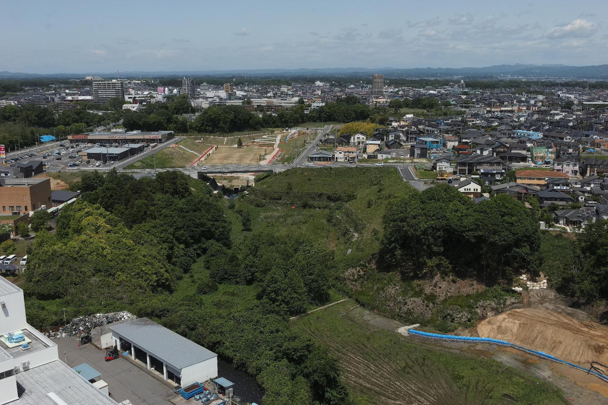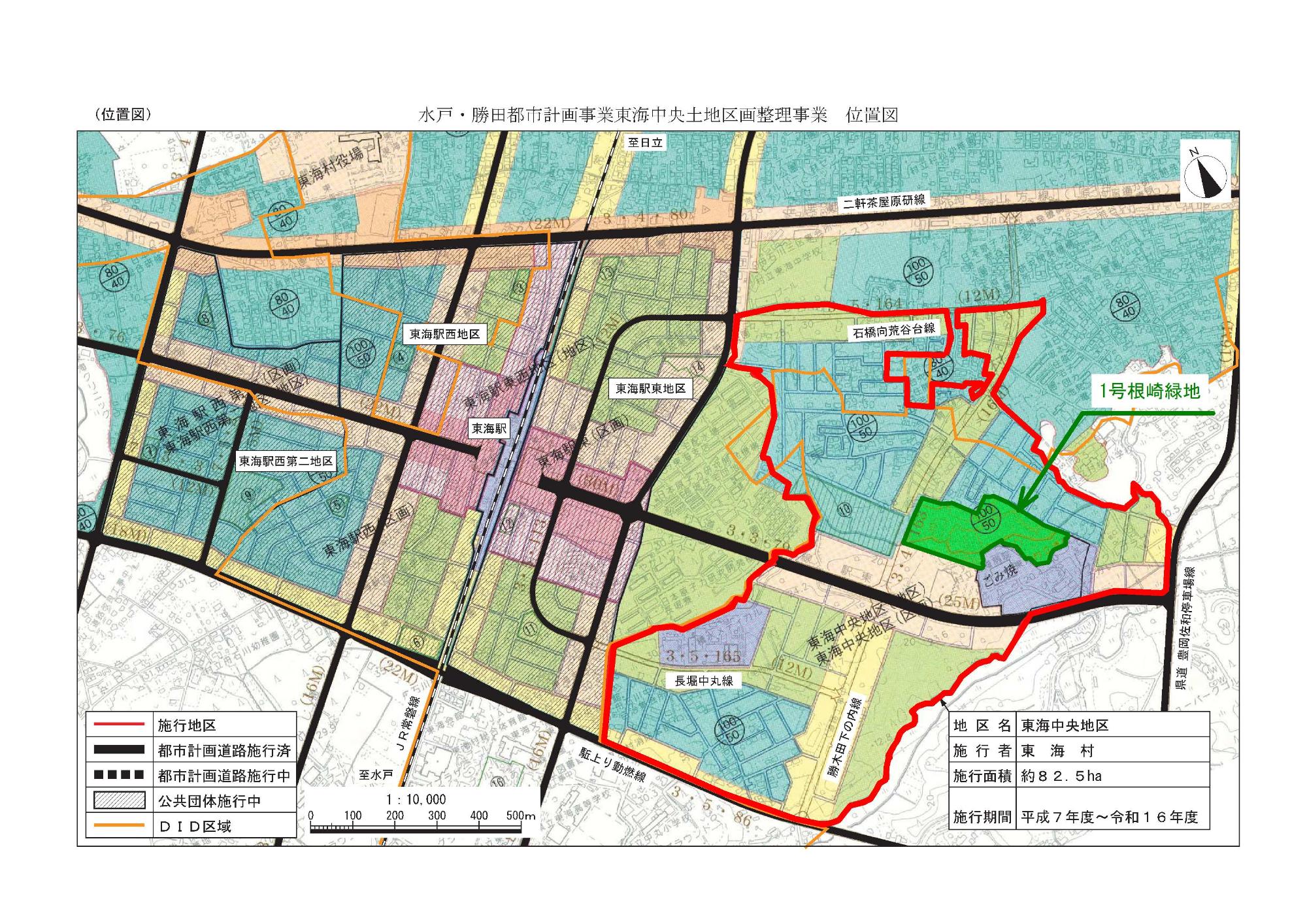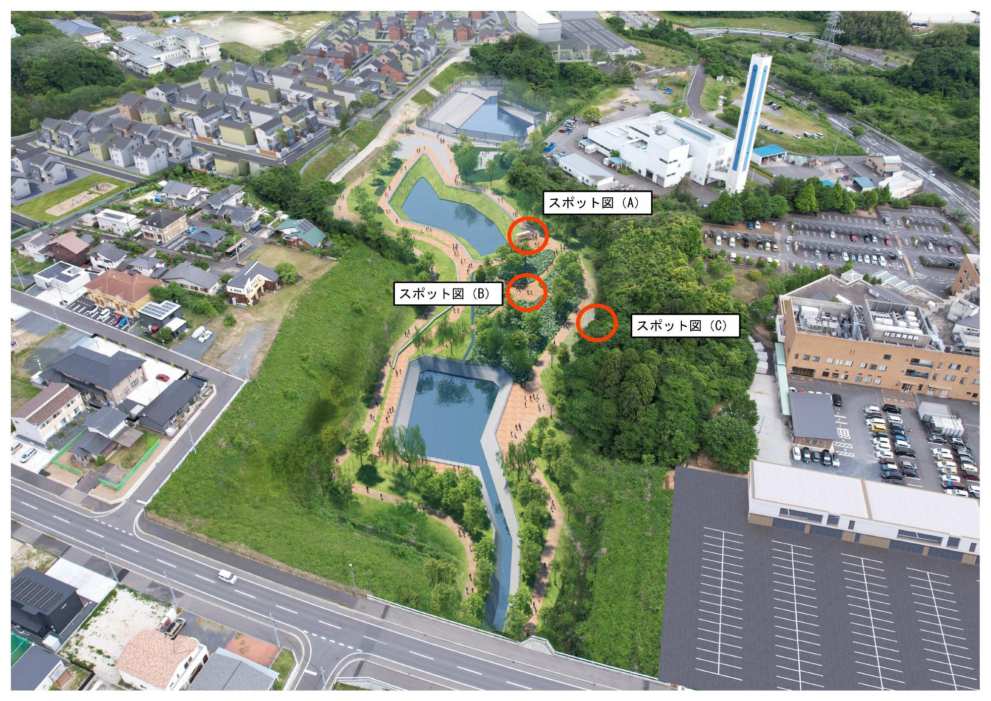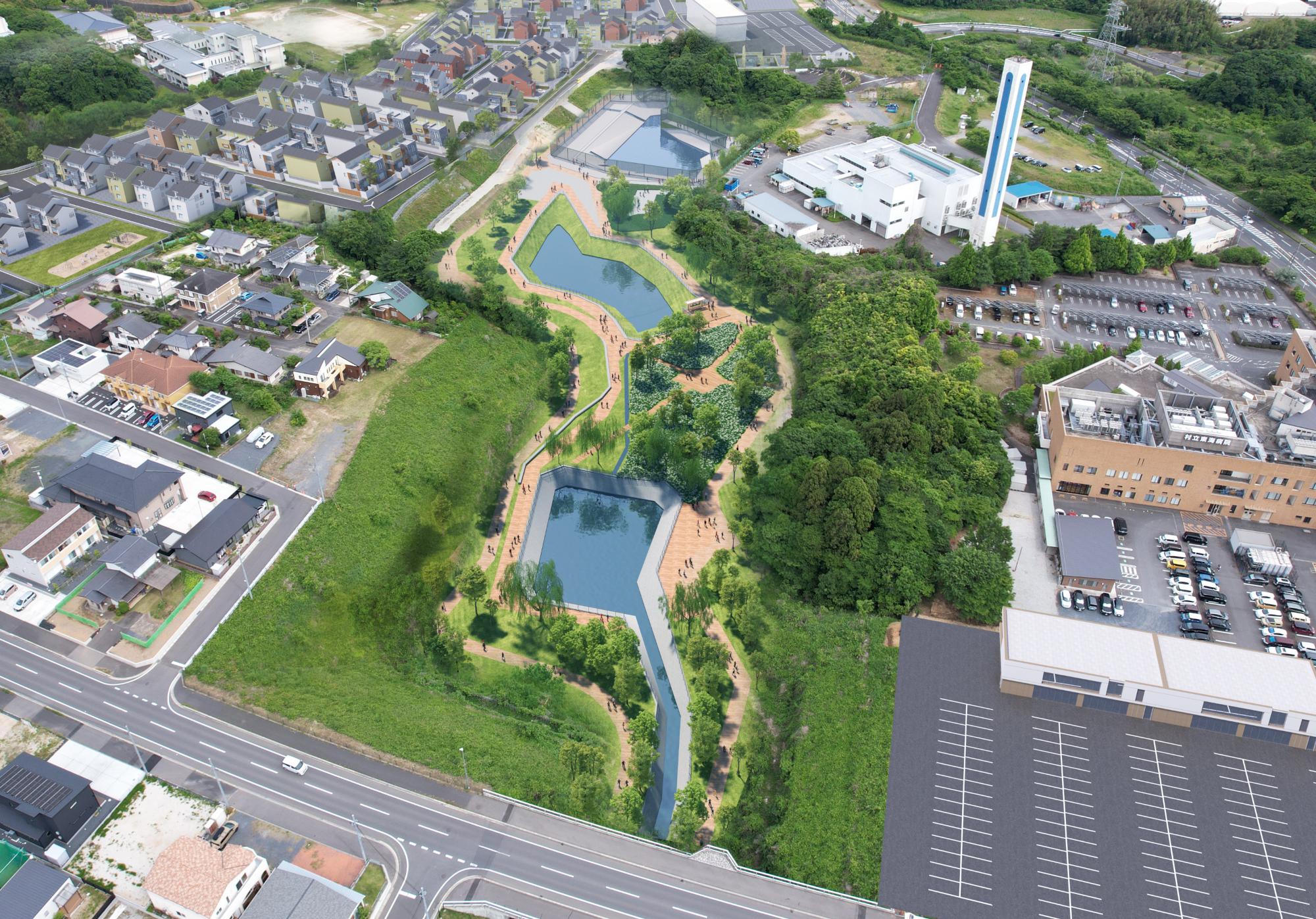 水戸・勝田都市計画事業東海中央土地区画整理事業地内の中央部にある1号根崎緑地全体が調整池になります。