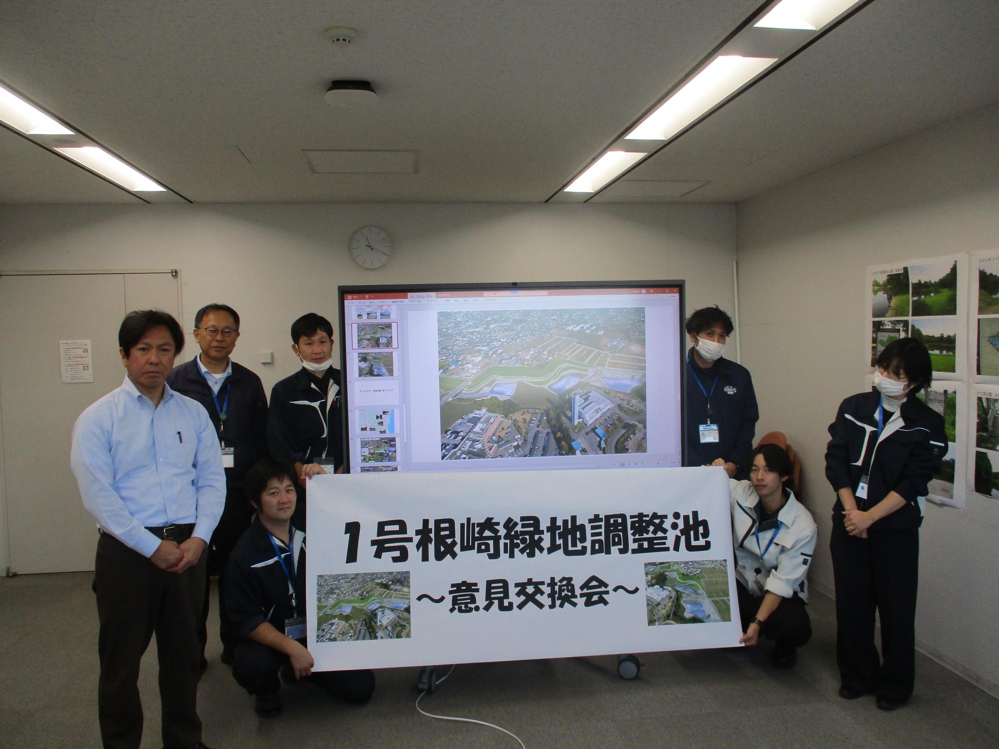 1号根崎緑地調整池の整備内容について報告し,意見・要望をいただきました。