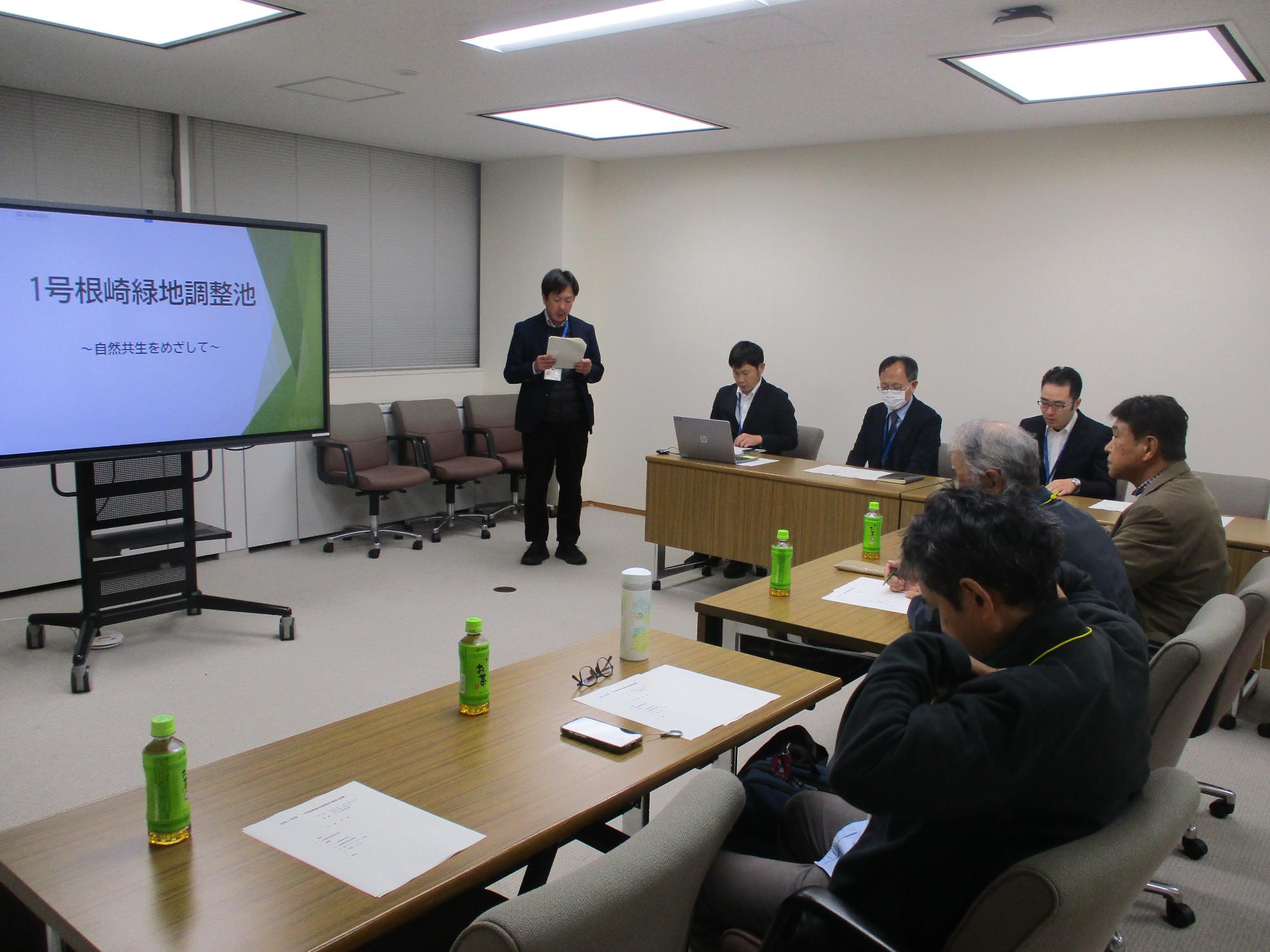 1号根崎緑地調整池整備計画の説明を行い,意見をいただきました。