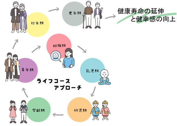 また,「健康寿命の延伸と健幸感の向上」の実現に向け,生涯を通じた健康づくりを推進していきます。