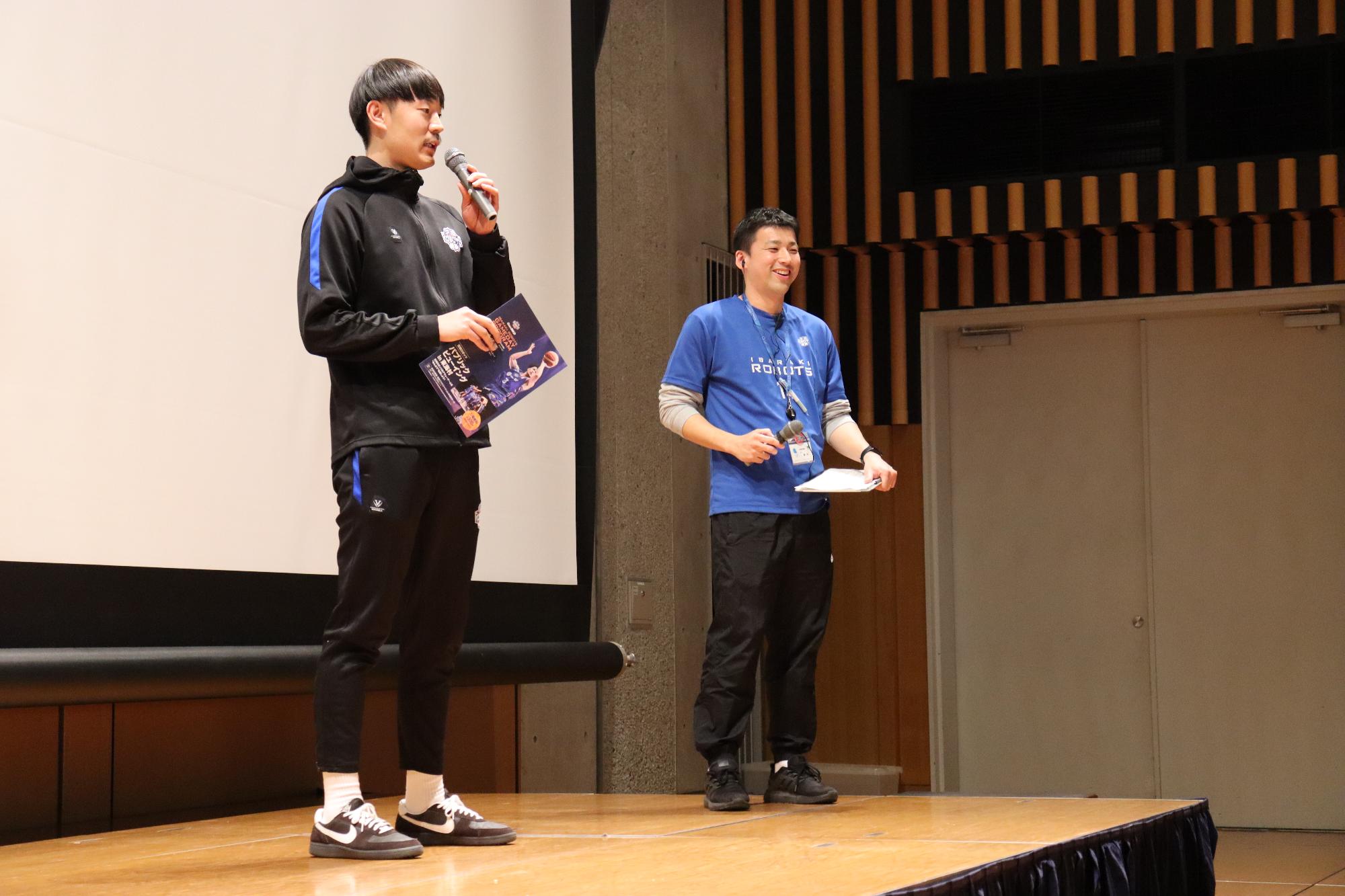 スペシャルゲストとして茨城ロボッツU15男子アシスタントコーチの金久保翔さんにお越しいただき,試合は87-86で劇的な勝利を飾りました!