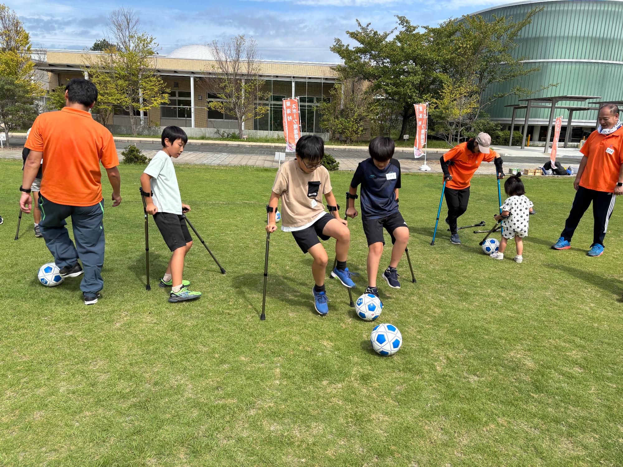 アンプティサッカー:専用の杖を使って片足でプレーします。
