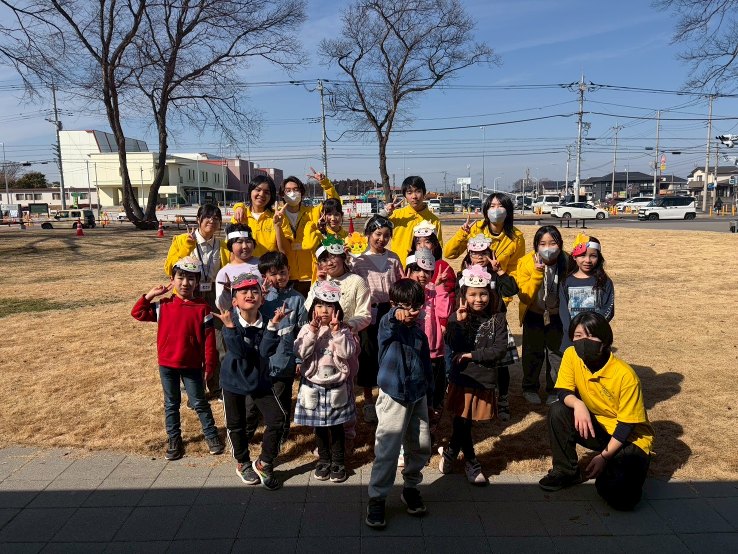 小学生と一緒に、「鬼のお面」を作って、色々な「おにごっこ」をして遊びました♪