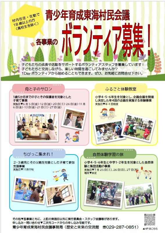 青少年育成東海村民会議事務局(電話番号:029-287-0851)までお問合せください。