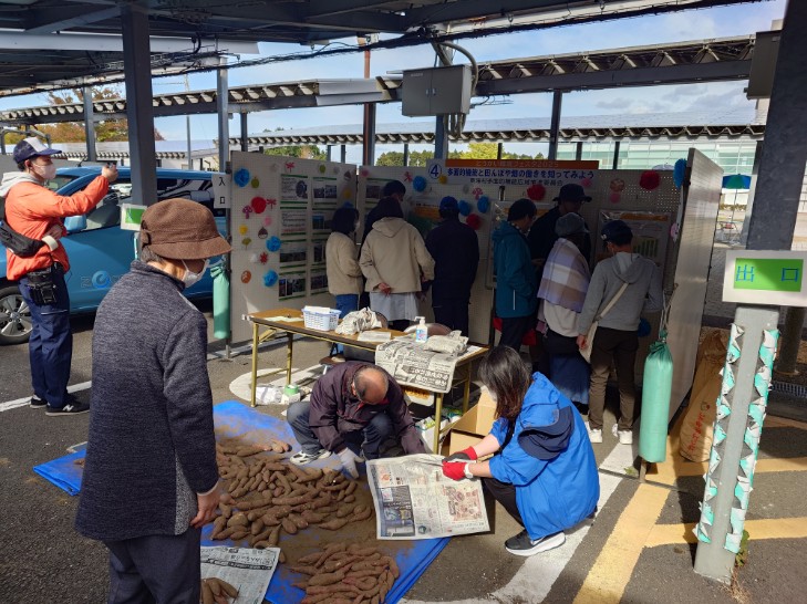 ブースには,午前中から途切れることなく人が訪れ,用意したたくさんのサツマイモもなくなるほどの大盛況となり,普段聞きなれない「多面的機能」と組織の活動について,多くの方に興味を持ってもらうよい機会となりました。