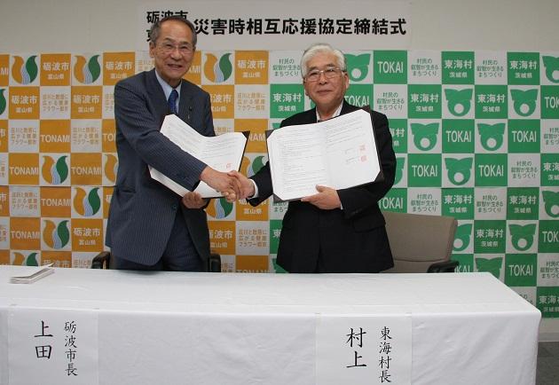 東海村はこの度,富山県砺波市(となみし)と災害時における相互応援協定を結びました。