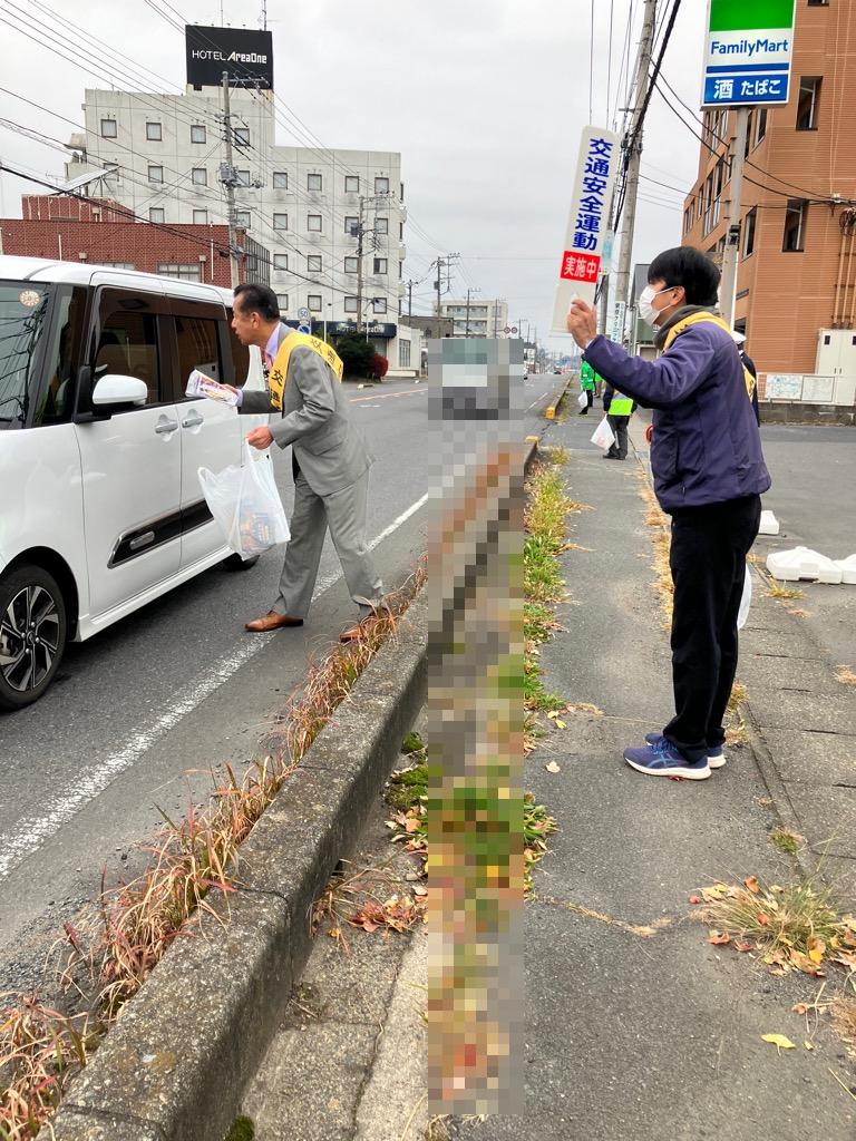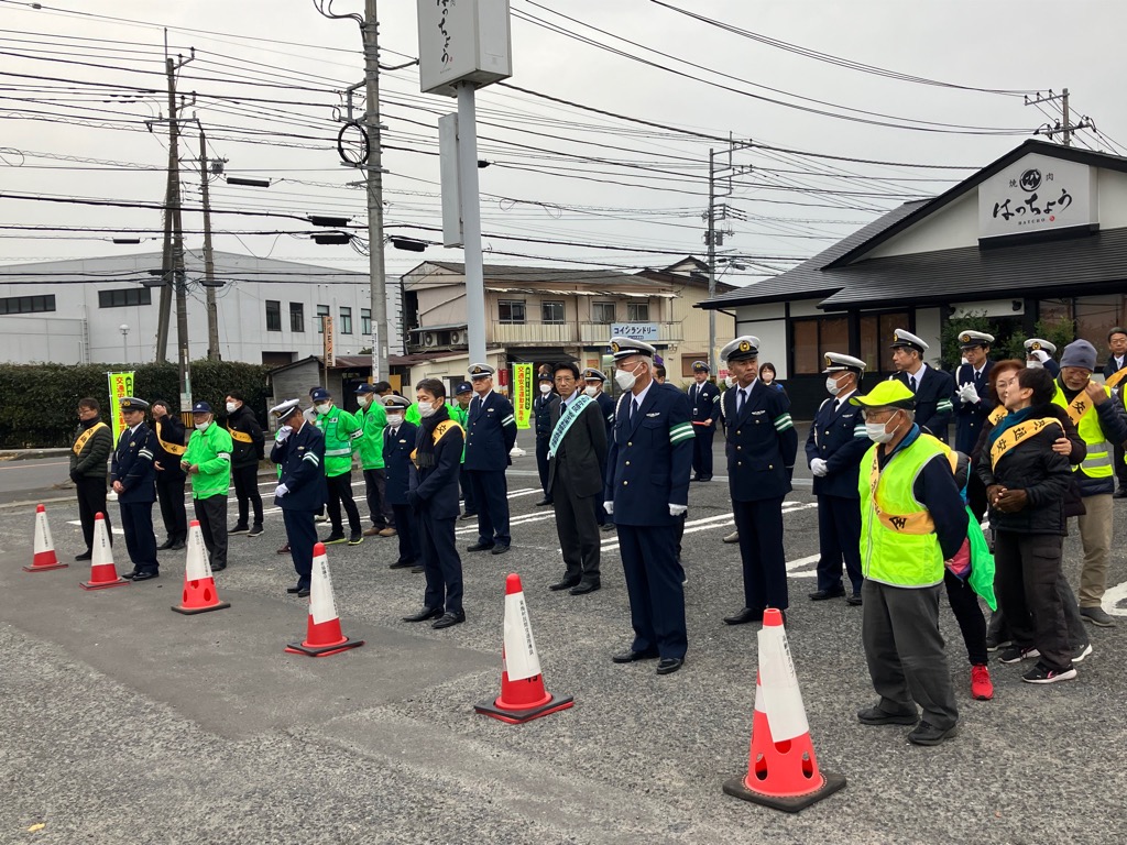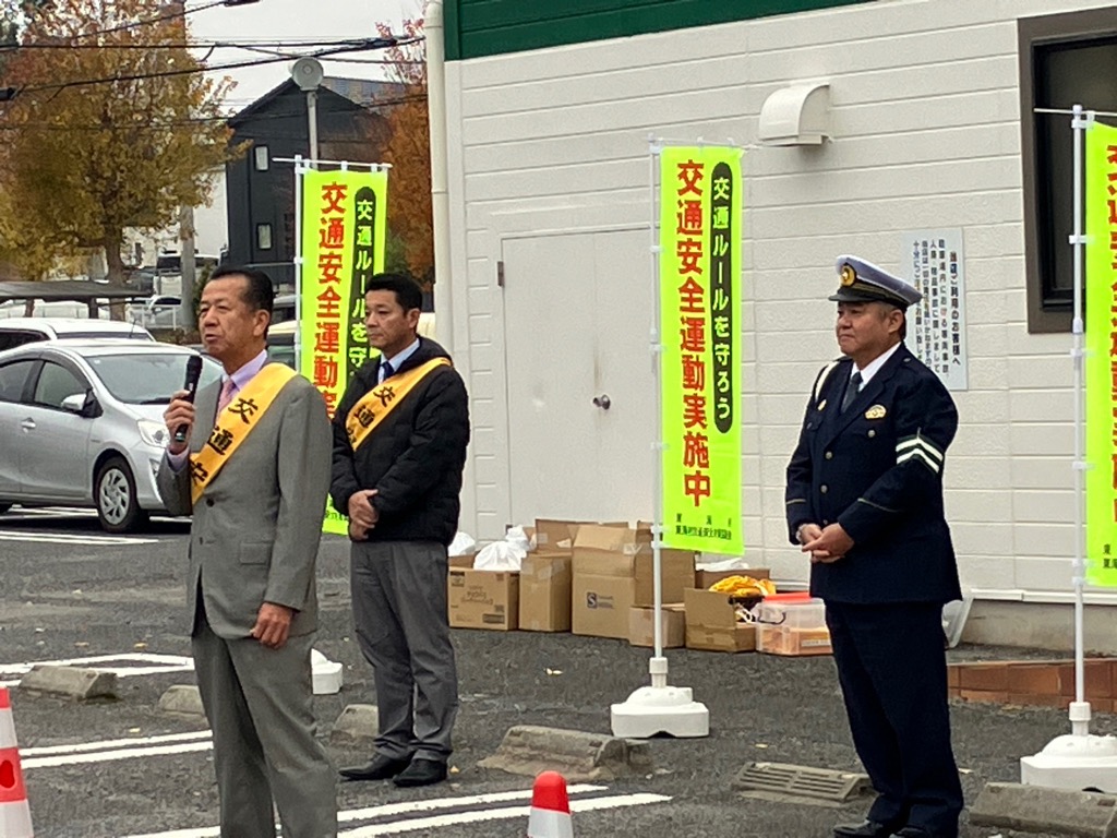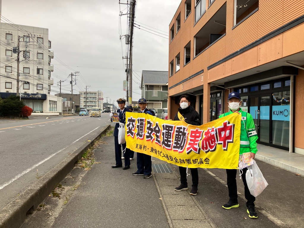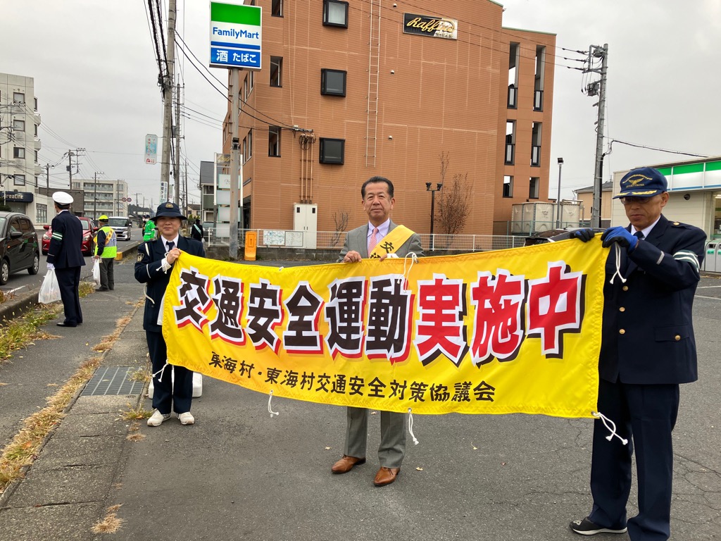 村では12月3日(水曜日)、舟石川北交差点で、ドライバーに向けて交通ルールの遵守と交通マナーの向上を呼びかけ啓発キャンペーンを行いました。