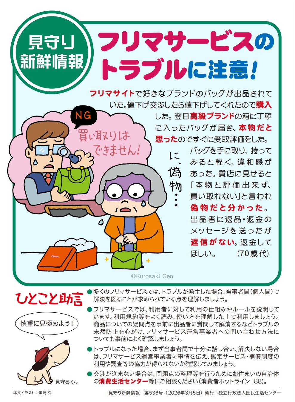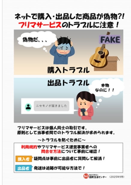 「フリマサービスを利用したら偽物が届いた!」という購入トラブルや「出品した商品が偽物と言われた!」などの出品トラブルの相談が寄せられています。